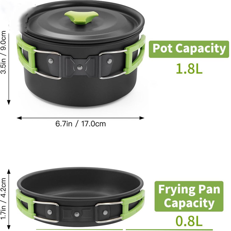 غیر زہریلا کوٹنگز کے ساتھ پریمیم ایلومینیم کھوٹ سے تیار کردہ ، کوک ویئر گرمی کی تقسیم کو بھی یقینی بناتا ہے اور کھانے کی تیاری کے لئے محفوظ رہتے ہوئے کیمپ فائر کھانا پکانے کا مقابلہ کرتا ہے۔