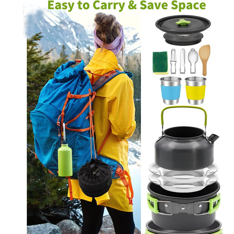 16 پی سی کیمپنگ کک ویئر ، کیمپنگ کھانا پکانے کے سیٹ کیمپنگ برتن