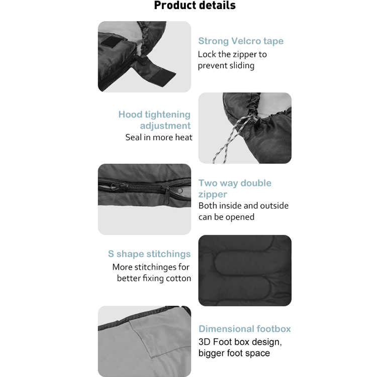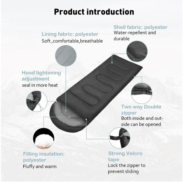 4 سیزن آؤٹ ڈور واٹر پروف لفافے کی قسم سلیپنگ بیگ۔ بیرونی مہم جوئی کے ل your آپ کا حتمی موسم کا تحفظ۔ اس اعلی معیار کے لفافے میں سونے والے بیگ میں اعلی واٹر پروف تعمیر کی خصوصیات ہے ، جو چاروں سیزن میں راحت اور گرم جوشی کو یقینی بناتی ہے۔ مختلف آب و ہوا کے حالات میں کیمپنگ اور پیدل سفر کے لئے مثالی۔