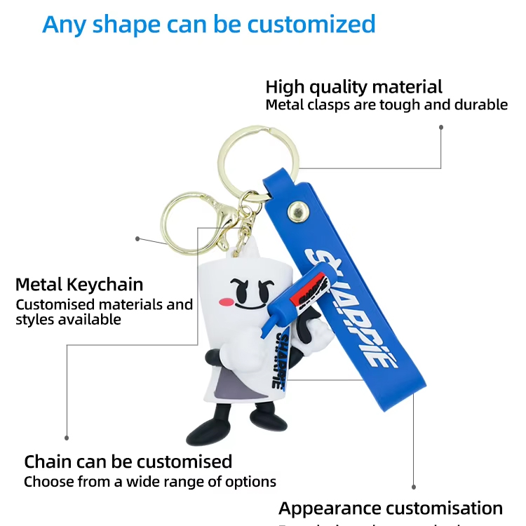 اپنے برانڈ یا آئیڈیا کو مکمل طور پر اپنی مرضی کے مطابق 2D یا 3D ڈیزائنوں کے ساتھ زندگی میں لائیں۔ چاہے یہ لوگو ، شوبنکر ، یا نعرہ ہو ، ہمارے نرم پیویسی کیچینز آپ کے وژن کو متحرک رنگ اور اعلی تفصیل کے ساتھ ملانے کے لئے تیار کیے گئے ہیں۔
