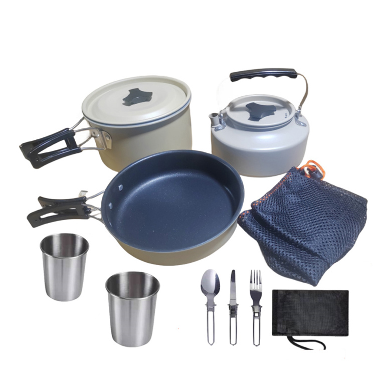 کیمپنگ کوک ویئر سیٹ کے ساتھ کیتلی پورٹ ایبل کھانا پکانے والے برتن سیٹ کے ساتھ سیٹ۔ گروپ مہم جوئی کے ل your آپ کا حتمی پورٹیبل باورچی خانے کا حل۔ اس ایلومینیم کیمپنگ کوک ویئر سیٹ میں ایک ورسٹائل کیتلی اور ایک سے زیادہ کھانا پکانے کے برتن شامل ہیں۔ 3-4 افراد کو موثر انداز میں پیش کرنے کے لئے ڈیزائن کیا گیا ہے ، یہ عملی بیرونی کارکردگی کے ساتھ ہلکے وزن کے استحکام کو جوڑتا ہے۔