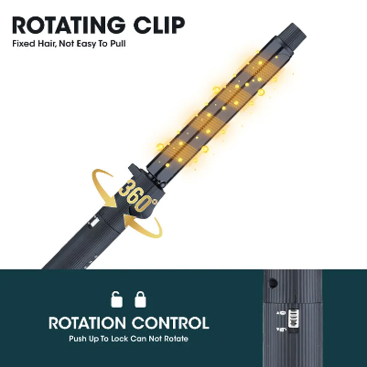 ✅360 ° گھومنے والا ڈیزائن:آسانی سے بالوں کو بیرل کے گرد 360 ° گھومنے والی خصوصیت کے ساتھ لپیٹتا ہے ، ہاتھ کا دباؤ کم کرتا ہے اور ہر بار بے عیب curls کے لئے خود اسٹائل کو تیز تر اور آسان بنا دیتا ہے۔