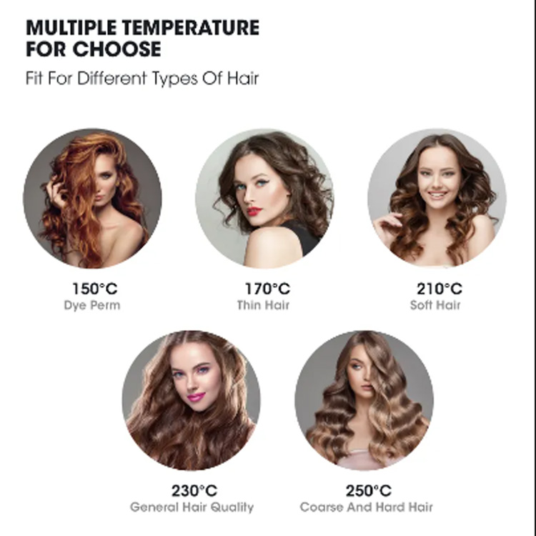 ✅ایل ای ڈی درجہ حرارت ڈسپلے: عین مطابق درجہ حرارت پر قابو پانے کے لئے ایل ای ڈی ڈسپلے سے لیس ، صارفین کو گرمی کی ترتیبات کو اپنے بالوں کی قسم اور زیادہ سے زیادہ نتائج کے ل sty اسٹائل کی ضروریات کے مطابق بنانے کی اجازت دیتا ہے۔