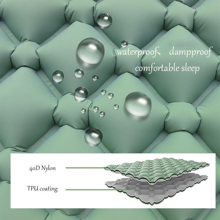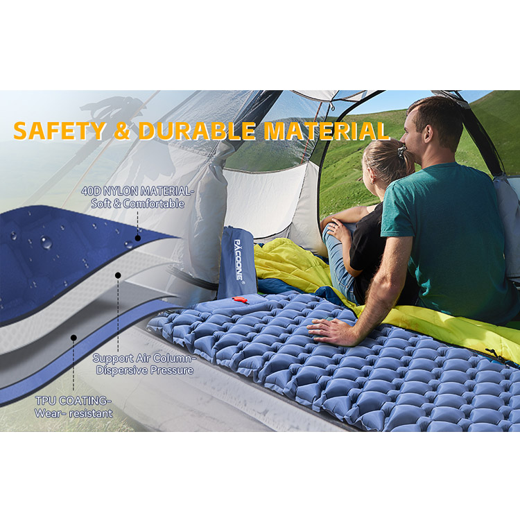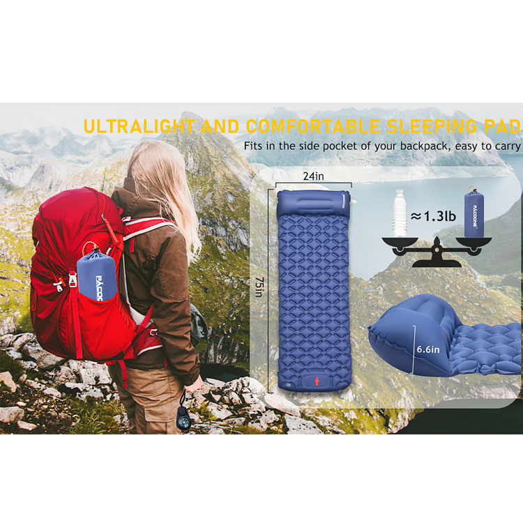 ہلکا پھلکا نایلان مواد فولڈنگ کیمپنگ ٹینٹ سلیپنگ پیڈ۔ بیرونی مہم جوئی کے لئے آپ کا حتمی پورٹیبل نیند حل۔ اس الٹرا لائٹ انفلٹیبل توشک میں سنگل پریس افراط زر اور مربوط تکیا ڈیزائن شامل ہیں۔ پائیدار نایلان مواد سے تیار کیا گیا ، یہ پیدل سفر اور کیمپنگ کے ل superight اعلی سکون فراہم کرتا ہے ، جہاں کہیں بھی آرام سے راتوں کو یقینی بناتا ہے۔