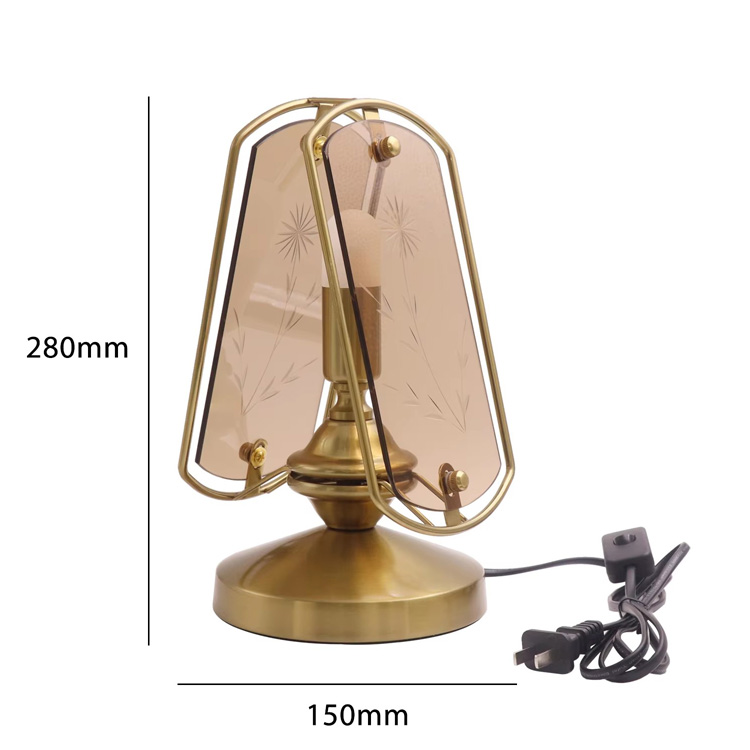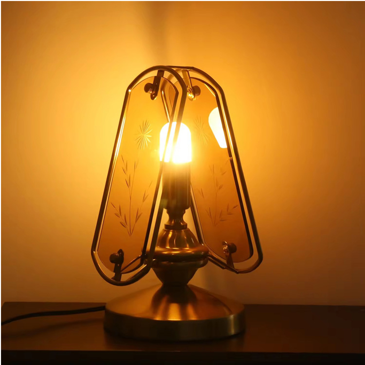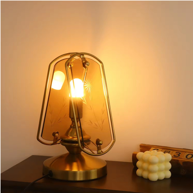 لگژری امریکن اسٹائل ٹیبل لیمپ لیڈ ہوٹل ریٹرو ڈیسک لیمپ۔ ہاتھ سے تراشے ہوئے تانبے سے چڑھی تفصیلات اور گرم روشنی کے ساتھ ونٹیج سے متاثر ٹیبل لیمپ، ایک خوبصورت ماحول بنانے کے لیے بہترین۔ آسان بٹن سوئچ آپریشن کے ساتھ پلگ ان ڈیزائن۔
