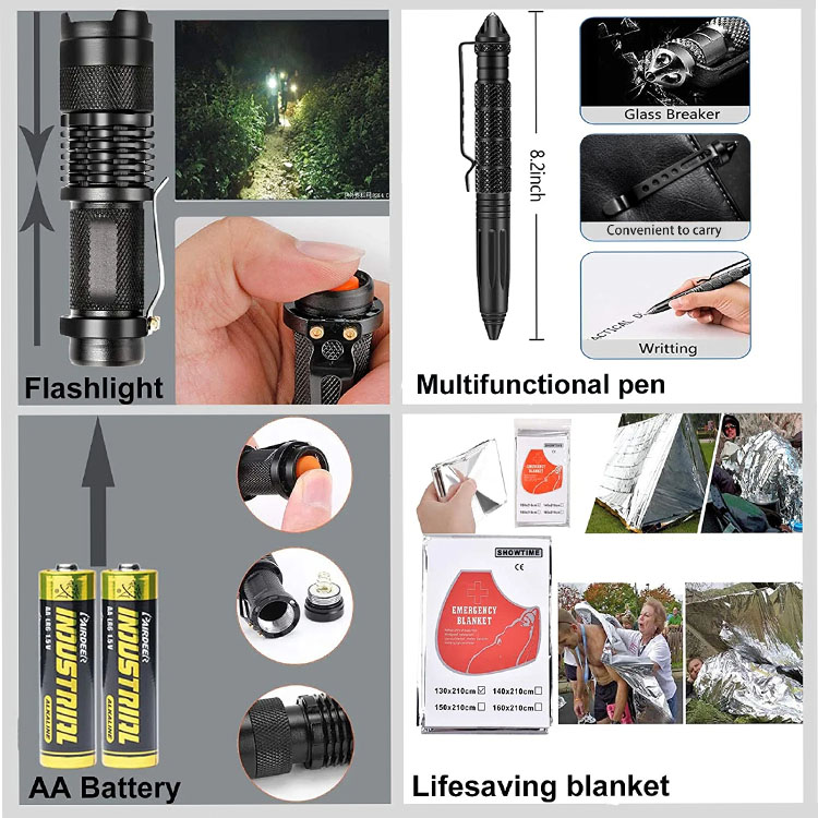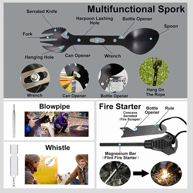 کیمپنگ پیدل سفر کے لئے تھوک بقا گیئر کٹ۔ ماہی گیری کے شکار کا شکار اس جامع گیئر کٹ میں ہنگامی فرار کی کلہاڑی ، سگنلنگ سیٹی ، اور قابل اعتماد فائر اسٹارٹر شامل ہیں۔ کیمپنگ ، پیدل سفر ، ماہی گیری اور شکار کے لئے ڈیزائن کیا گیا ہے ، یہ اہم حالات میں زیادہ سے زیادہ تیاری کو یقینی بناتا ہے۔